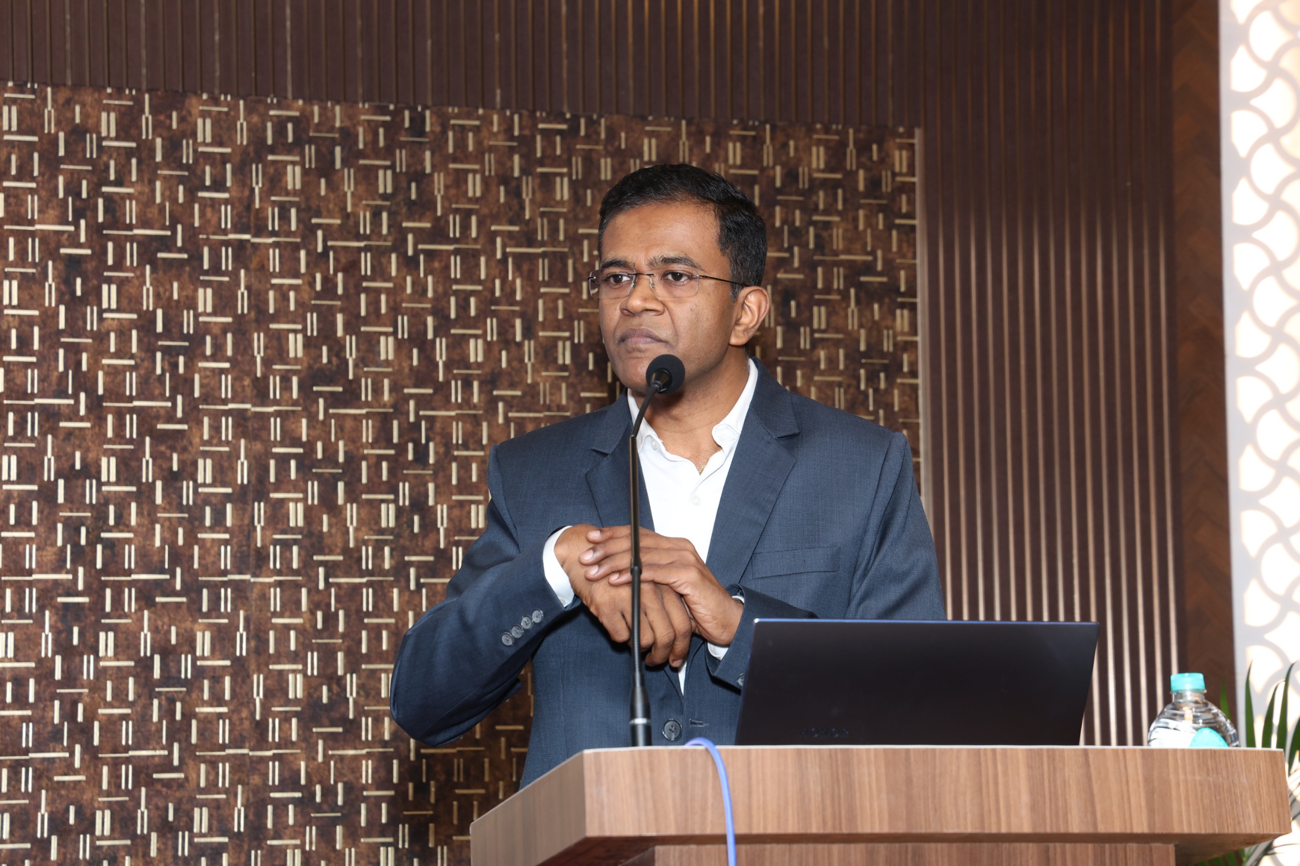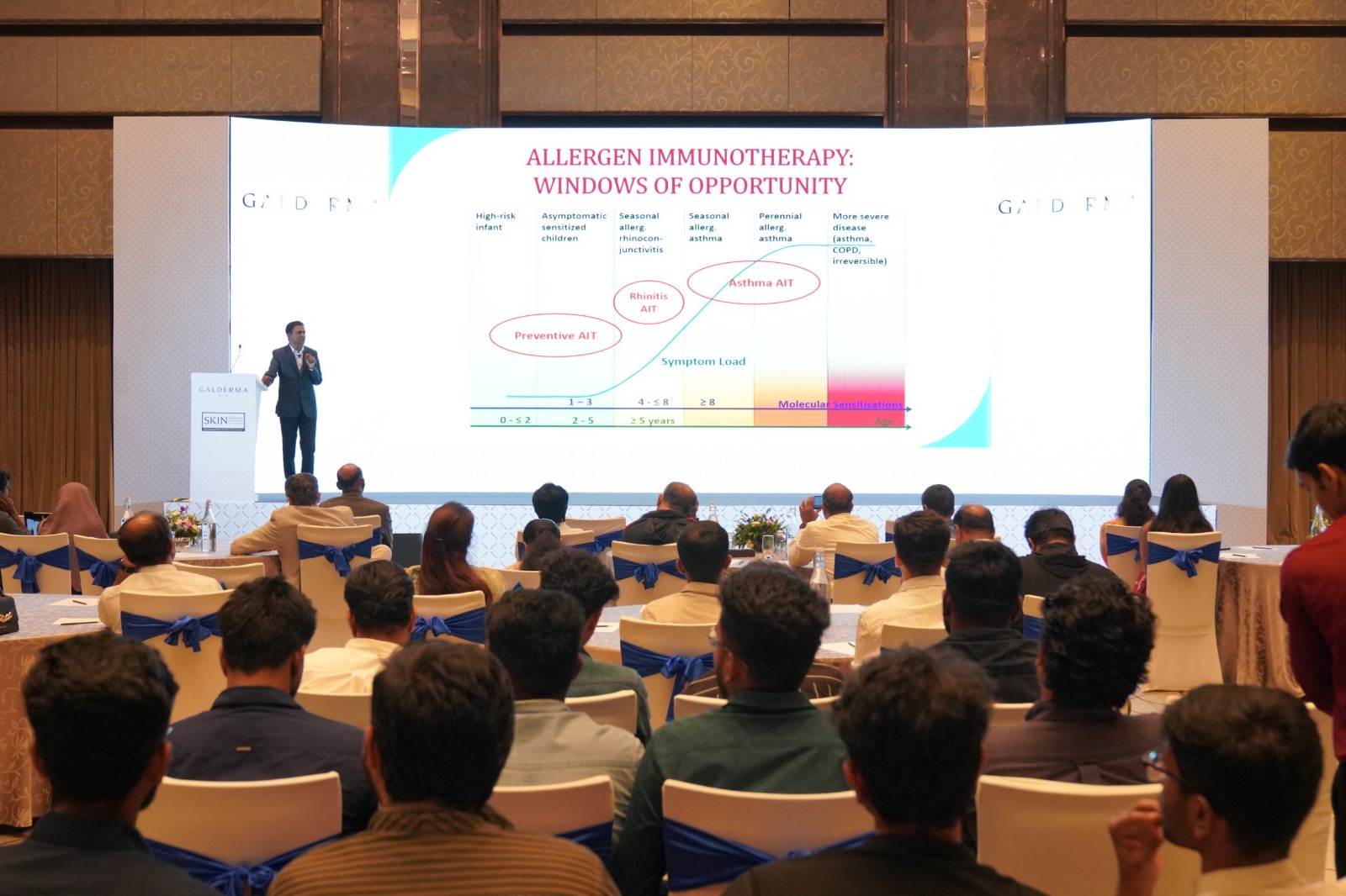 Dr Balachandra presenting a lecture on Atopic March at the Shangri-La, as part of the event hosted by the Galderma.